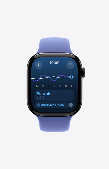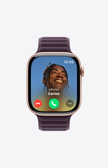 El Series 10 tiene un área de visualización más grande que la de cualquier otro Apple Watch: es hasta un 75% mayor que la del Series 3, hasta un 30% mayor que la del Series 4, 5, 6 y SE, y hasta un 9% mayor que la del Series 7, 8 y 9. Una diferencia de espacio enorme que te ayuda a ver y hacer mucho más.